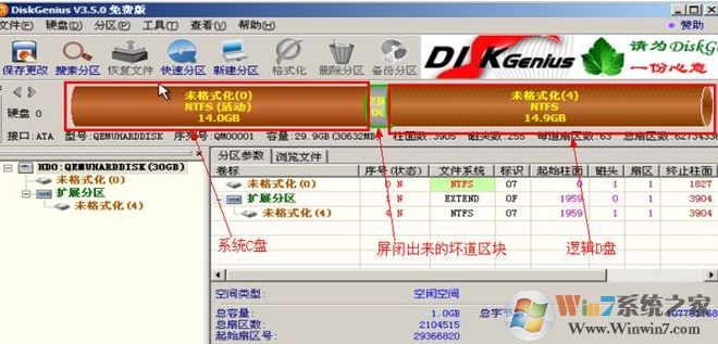 特別說明:之所有是14GB就是把剩下的0.49的空閑空間給扔掉,不分區(qū)也就達(dá)到了屏閉磁盤這個壞道的地步了。