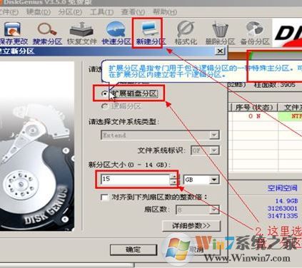 DiskGenius新建擴展磁盤分區(qū);