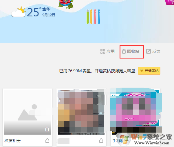 1、登錄您的QQ空間,點(diǎn)擊->【相冊(cè)】。在【我的相冊(cè)】下點(diǎn)擊回收站;