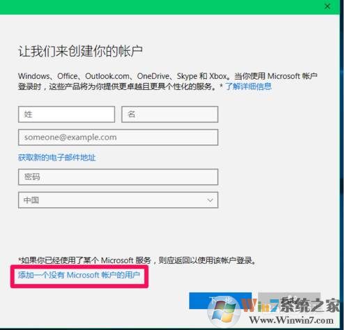 4、添加一個(gè)沒(méi)有Microsoft帳戶的用戶;