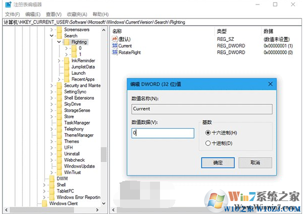 HKEY_CURRENT_USER\Software\Microsoft\Windows\CurrentVersion\Search\Flighting