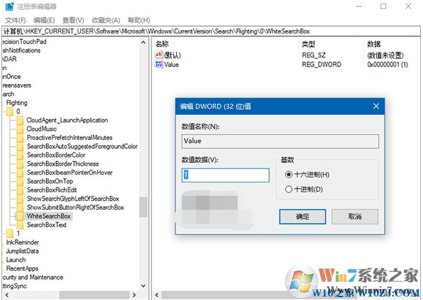② 修改WhiteSearchBox的Value的數(shù)值數(shù)據(jù)為1,如下圖 ——