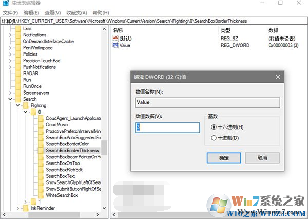 ④ 把SearchBoxBorderThickness數(shù)值數(shù)據(jù)改為你希望的寬度,比如 3,如下圖 ——