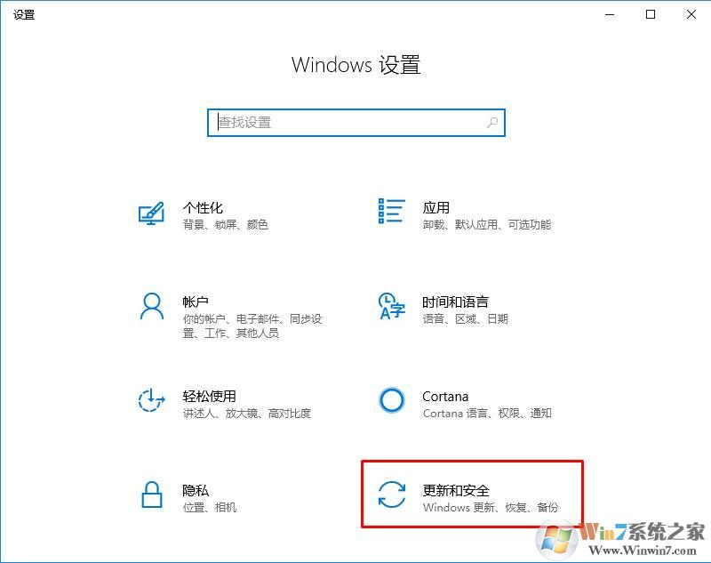 2、再打開更新和安全選項;