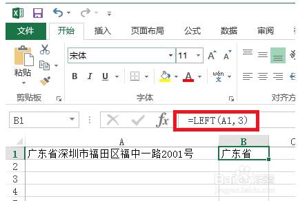 輸入公式=LEFT(A1,3),在A1中從左提取3個字符,即省份名