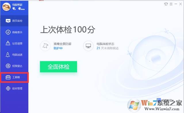 1、首先安裝騰訊電腦管家最新版,然后屏蔽廣告安裝騰訊管家,找到找到工具箱