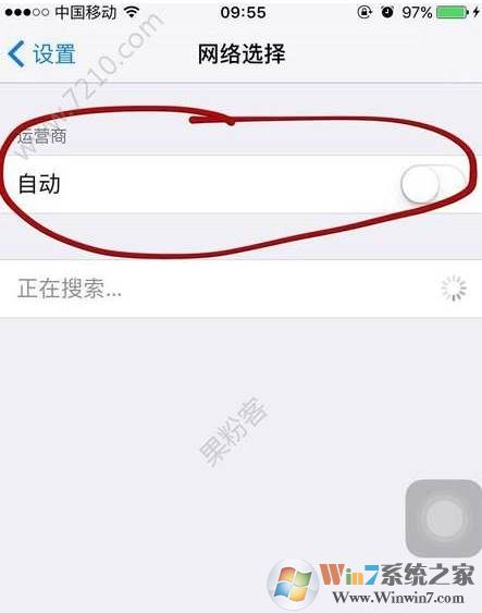 2、開(kāi)啟后馬上點(diǎn)擊運(yùn)營(yíng)商,進(jìn)入到運(yùn)營(yíng)商的網(wǎng)格選擇頁(yè)面中將自動(dòng)按鈕進(jìn)行關(guān)閉;