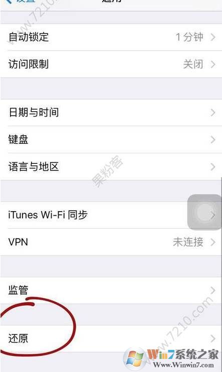 3、這時(shí)我們?cè)龠M(jìn)入到設(shè)置頁(yè)面,在設(shè)置頁(yè)面中找到通用的按鈕,然后在通用中找到還原按鈕;