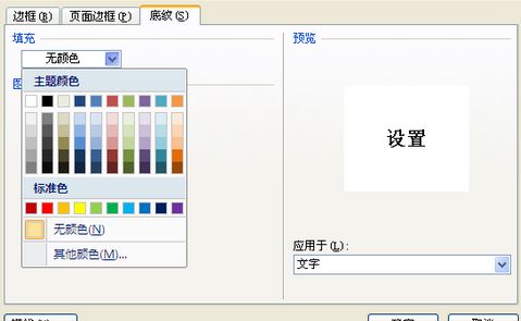 3、然后彈出邊框和底紋對(duì)話框,選擇底紋選項(xiàng)卡,在填充處選擇一種所需要的顏色即可,如下圖二所示: