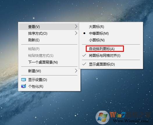 右鍵點擊桌面,然后在右鍵菜單中,選擇查看,把“自動排列圖標”取消勾選;