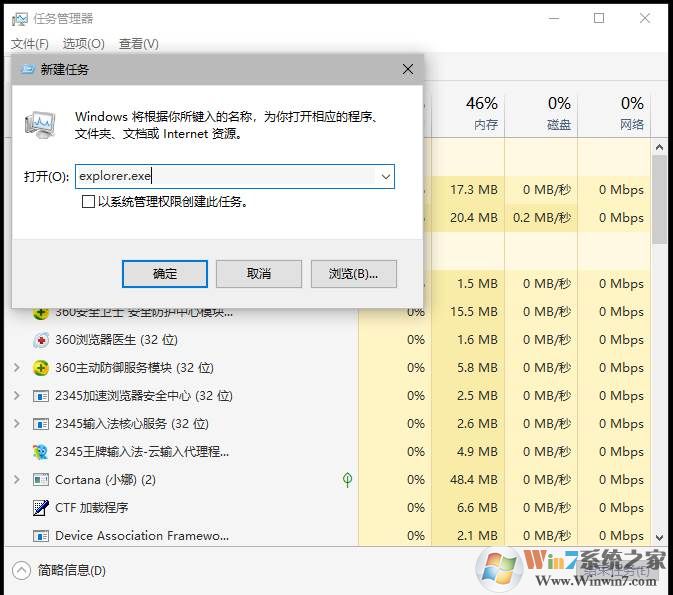 3、這時桌面和窗口都會消失,我們再點擊任務(wù)管理器上的,文件——》運行,輸入 explorer.exe 回車即可;