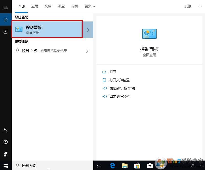 1、首先在搜索框,輸入控制面板,并打開;
