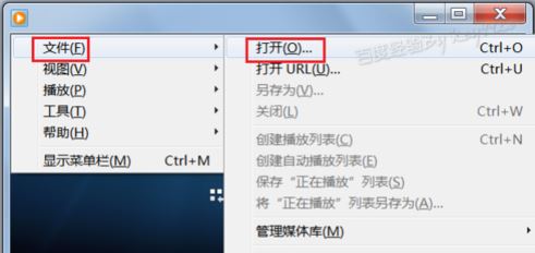 2、從彈出的菜單中選擇“文件”,再選擇“打開…”命令。或者直接按Ctrl+O彈出“打開”對話框,并定位到音視頻所在的目錄下: