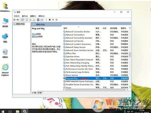 2、打開服務(wù)項(xiàng)目之后,我們找找有沒有一個 Plug and Play服務(wù),一些用戶可能會發(fā)現(xiàn)這個服務(wù)被禁用了,問題就出在這里。