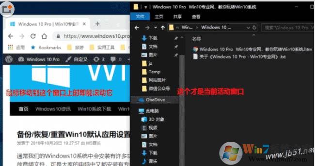 如上圖所示:現(xiàn)在的新Win10系統(tǒng)中,即使該窗口在其他窗口的下面處于非活動(dòng)狀態(tài),當(dāng)你把鼠標(biāo)移動(dòng)到該窗口上時(shí),滾動(dòng)鼠標(biāo)滾輪也一樣可以滾動(dòng)它,而無(wú)需點(diǎn)擊該窗口激活它為活動(dòng)狀態(tài)。如圖:
