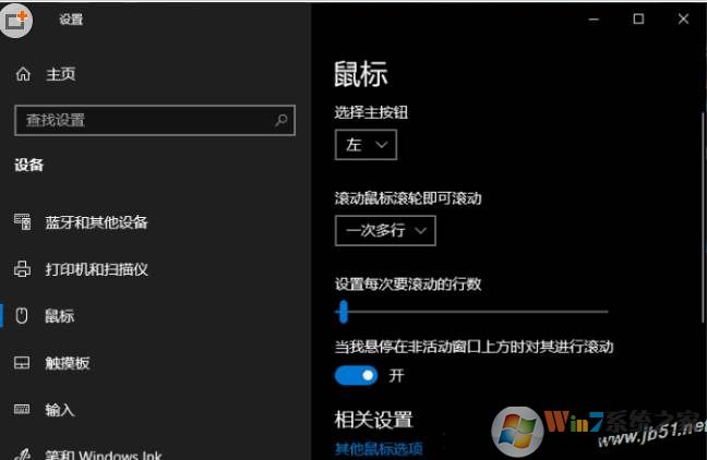 那么這一功能的設(shè)置項(xiàng)是在哪里呢?進(jìn)入“Windows設(shè)置 - 設(shè)備 - 鼠標(biāo)”設(shè)置界面,即可看到“當(dāng)我懸停在非活動(dòng)窗口上方時(shí)對(duì)其進(jìn)行滾動(dòng)”設(shè)置項(xiàng)。如圖: