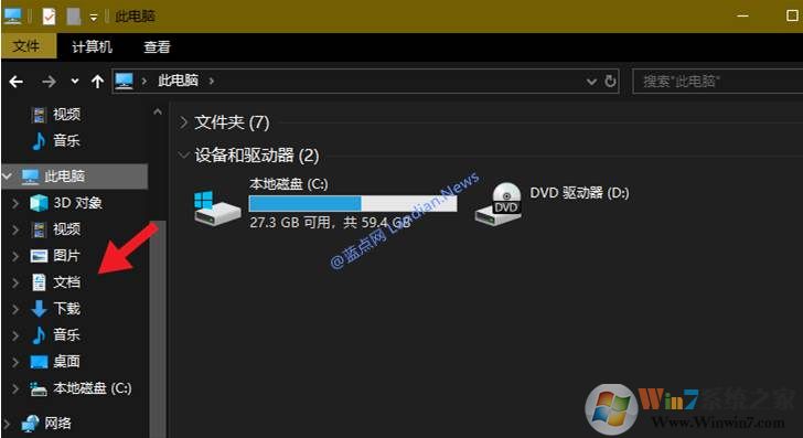 ;取消文件資源管理器左側(cè) 文檔 文件夾