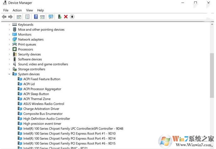 1、打開設(shè)備管理器,然后選擇系統(tǒng)設(shè)備。