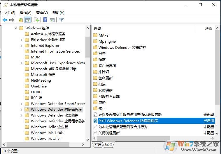 2、展開--管理模板--Windows組件--Windows defender防病毒程序;