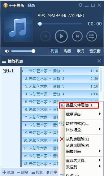 一般來說批量修改標(biāo)題改成文件名那是最方便的。我們可以使用千千靜聽軟件來自動(dòng)更改標(biāo)題為文件名。