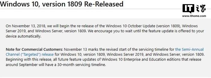“在2018年11月13日,我們將開(kāi)始重新發(fā)布Windows 10更新十月版(版本1809),Windows Server 2019和Windows Server版本1809,我們建議你等到提供給設(shè)備的自動(dòng)功能更新,“微軟在支持文件中說(shuō)。