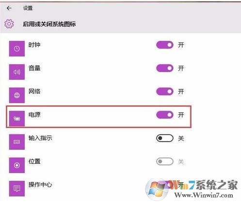 4、接下來,在打開的系統(tǒng)圖標(biāo)頁面中,我們先嘗試打開電腦中的電池顯示圖標(biāo),如果可以點(diǎn)擊開啟該圖標(biāo)的話,點(diǎn)擊開啟即可。