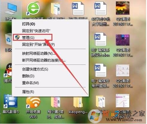 1、在設(shè)備管理器中進(jìn)行相關(guān)調(diào)節(jié),我們需要首先進(jìn)入Win10系統(tǒng)中的設(shè)備管理器,在桌面上對著計(jì)算機(jī)圖標(biāo)擊右鍵,在彈出的菜單中選擇“管理”選項(xiàng)。