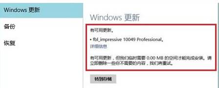 Win10是剛出來的系統(tǒng),如果有漏洞不完善的地方會立馬更新的,那么官方發(fā)布了更新升級包后,很多Win10用戶就會收到更新提示有可用更新,但是有些用戶并不能正常更新,而是出現(xiàn)提示:“有可用更新,但我們臨時需要0.00MB的空間才能完成安裝,請立即刪除一些你不需要的內(nèi)容,我們將重試”。這種問題估計在今后會更容易出現(xiàn),按照檢測結(jié)果顯示,國內(nèi)有32.44%的用戶會因系統(tǒng)盤剩余空間不足而不能升級Win10,這里提到的問題,也應該是這個原因。