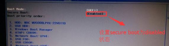返回BOOT選項,將Secure BOOT默認(rèn)enabled為disabled,關(guān)閉安全啟動