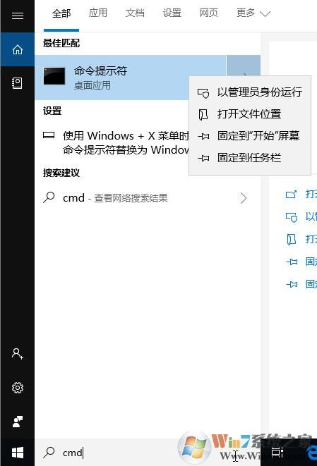 在任務(wù)欄搜索框中輸入CMD,然后右鍵管理員身份運(yùn)行