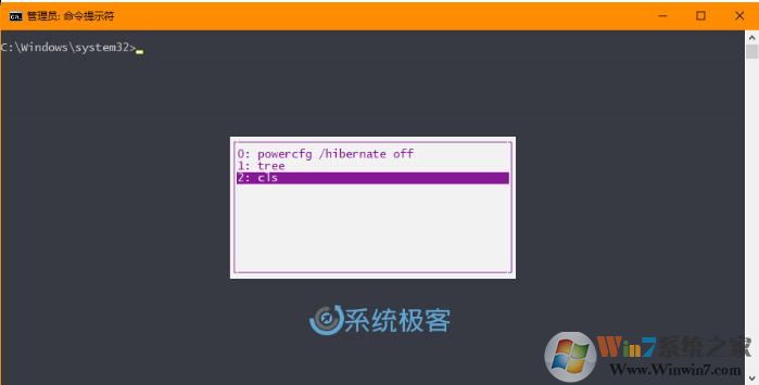 此時(shí)將彈出當(dāng)前 CMD 會(huì)話窗口中所執(zhí)行過(guò)的命令列表,你可以使用鍵盤 ↑向上 或 ↓向下 箭頭選擇要重用的命令,也可以使用 ESC 鍵退出。