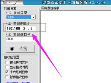 2、接下來是設置本地的IP地址,這個工具不錯,可以自動獲取到當前電腦的IP地址,如果是要本地地址則填入127.0.0.1.,如圖: