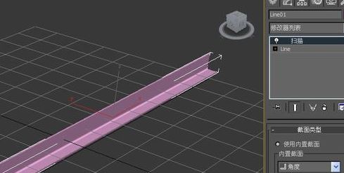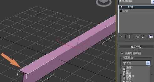 4、在右邊的【掃描命令】面板上,在內(nèi)置截面的下拉列表中,可以選擇不同的截面,比如這里選擇T型的截面,可看到直線變?yōu)門型結構,如圖: