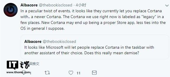 Albacore隨后補(bǔ)充道,還有一種可能是,微軟打算用新的Cortana取代舊版的。新的Cortana可能最終成為一個(gè)商店應(yīng)用程序,與操作系統(tǒng)的聯(lián)系較可能會比較少。