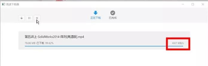 6、點(diǎn)擊下載之后,就可以看到下載進(jìn)度和速度了,比如這里演示的下載速度超過了4M每秒,速度非??欤苓m合下載大文件。