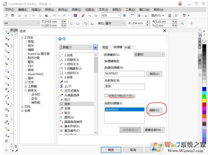 6、如果指定的快捷鍵有沖突,可以刪除原有快捷設(shè)置;