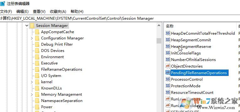 HKEY_LOCAL_MACHINE\SYSTEM\CurrentControlSet\Control\Session Manager,然后在右側(cè)框中找到PendingFileRenameOperations