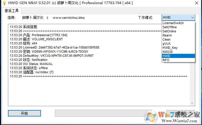 啟動中。打開之后,我們要工作模式處選擇 HWID模式;
