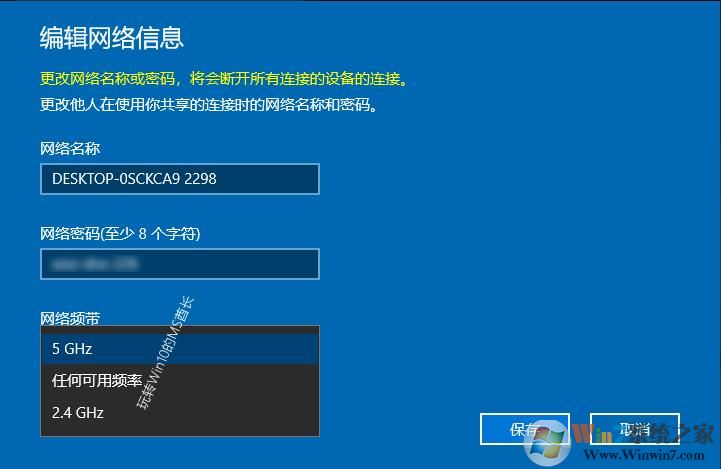 在“網(wǎng)絡(luò)頻帶”下拉列表中選擇“5 GHz”,保存。
