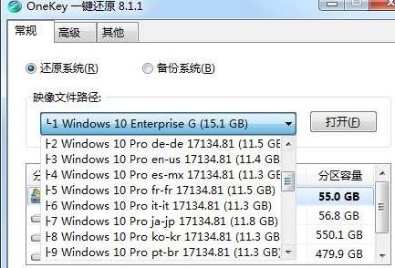 1、打開Onekey然后點(diǎn)擊打開,選擇ISO鏡像(原版或GHOST系統(tǒng)都可以),如下圖,小編選擇的是windows10多系統(tǒng)鏡像合集,工具精確的識別了所有系統(tǒng);