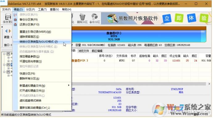 解決Windows 10安裝過程中分區(qū)錯誤的另一種方法,是將安裝分區(qū)轉(zhuǎn)換為GPT分區(qū)。雖然用DISKPART命令可以解決分區(qū)轉(zhuǎn)換問題,但對于普通用戶來說,命令式的操作比較繁瑣且容易出錯,這時不妨可以使用簡單易行的DiskGenius分區(qū)工具來完成分區(qū)格式轉(zhuǎn)換。