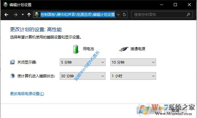 3、點(diǎn)擊當(dāng)前電源計(jì)劃右側(cè)的“更改計(jì)劃設(shè)置”,會跳轉(zhuǎn)到“控制面板\硬件和聲音\電源選項(xiàng)\編輯計(jì)劃設(shè)置”界面。如圖:
