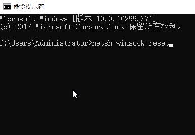 2、在彈出的命令提示符窗口中,輸入“netsh winsock reset”,然后按回車,重置完成后會(huì)提示需要重啟電腦,此時(shí)我們直接正常重啟電腦即可。