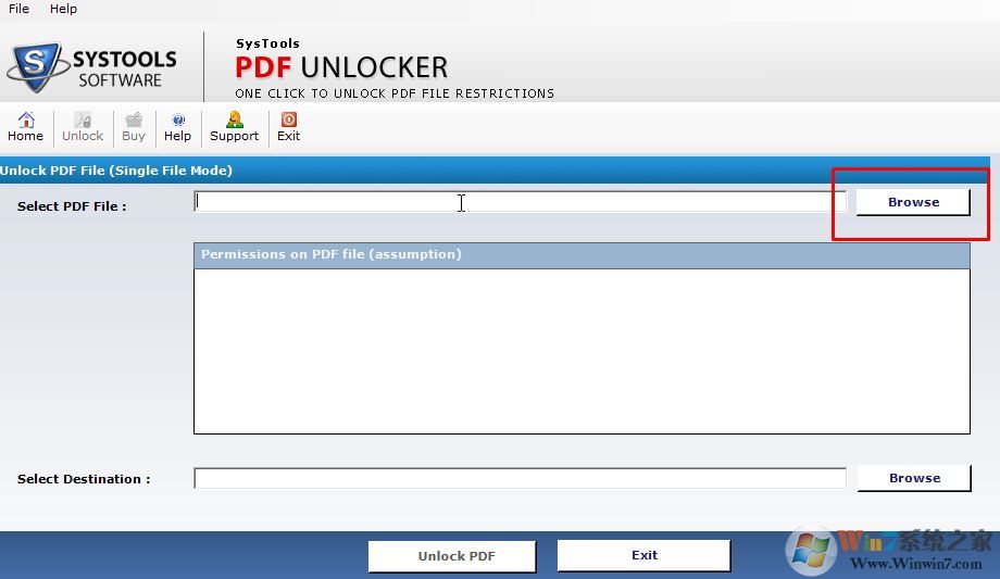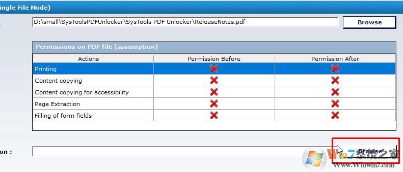4、點(diǎn)擊右側(cè)的【Browse】按鈕,選擇m.cncxm.com需要解密的PDF文件;
