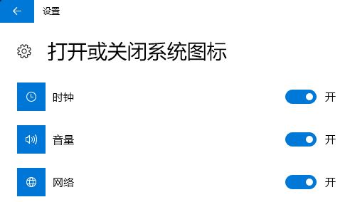 4、設(shè)置完成后點(diǎn)擊左上角的后退按鈕返回設(shè)置界面,點(diǎn)擊【通知區(qū)域】下面點(diǎn)擊【打開或關(guān)閉系統(tǒng)圖標(biāo)】;