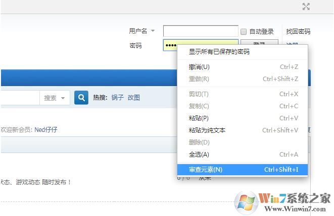 1、下如就是一個(gè)自動(dòng)保存的密碼,我們想查看這個(gè)密碼,把鼠標(biāo)放在密碼框上點(diǎn)右鍵,點(diǎn)審查元素(也可以鼠標(biāo)放在密碼框上,按F12)