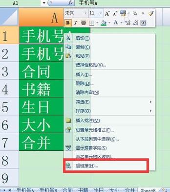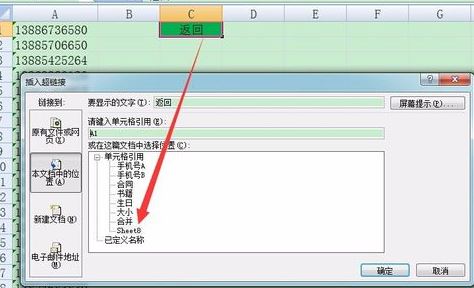 5、我們按照剛才的方法,在“手機(jī)號(hào)A”這個(gè)Sheet里設(shè)置一下返回到匯總表sheet8的超鏈接,如圖: