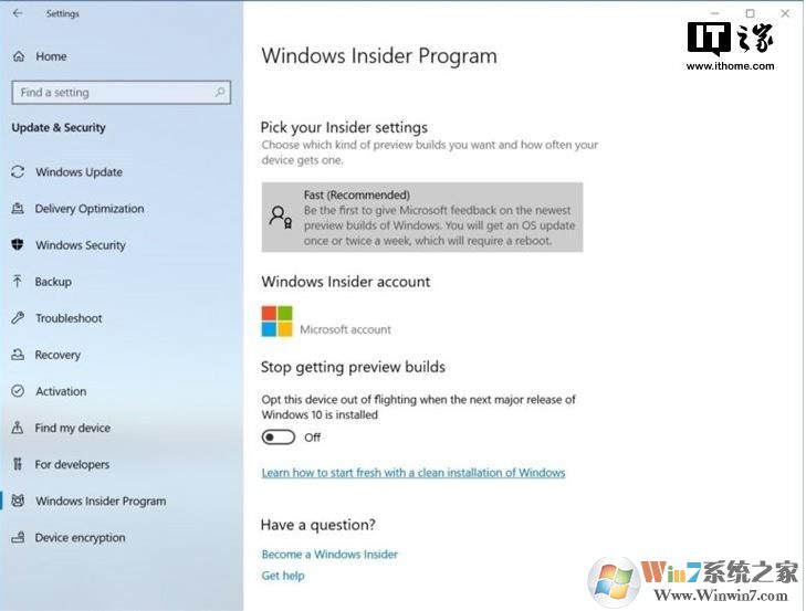 更簡單的Windows Insider程序設置頁面