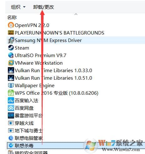 3、找到聯(lián)想殺毒選擇“卸載”;