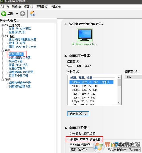 1、在桌面點(diǎn)擊右鍵進(jìn)入(NVIDIA控制面板),左側(cè)欄中(顯示)-(更改分辨率)-(3應(yīng)用以下設(shè)置)中選擇(使用NVIDIA顏色設(shè)置)